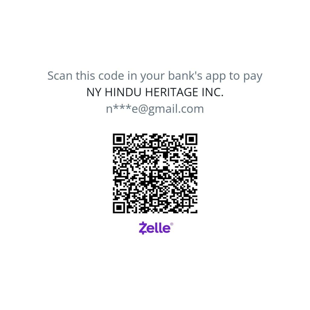 If you would like to donate to New York Hindu Heritage, you can use the QR code, or send your donation via Zelle or PayPal to nyhinduheritage@gmail.com.